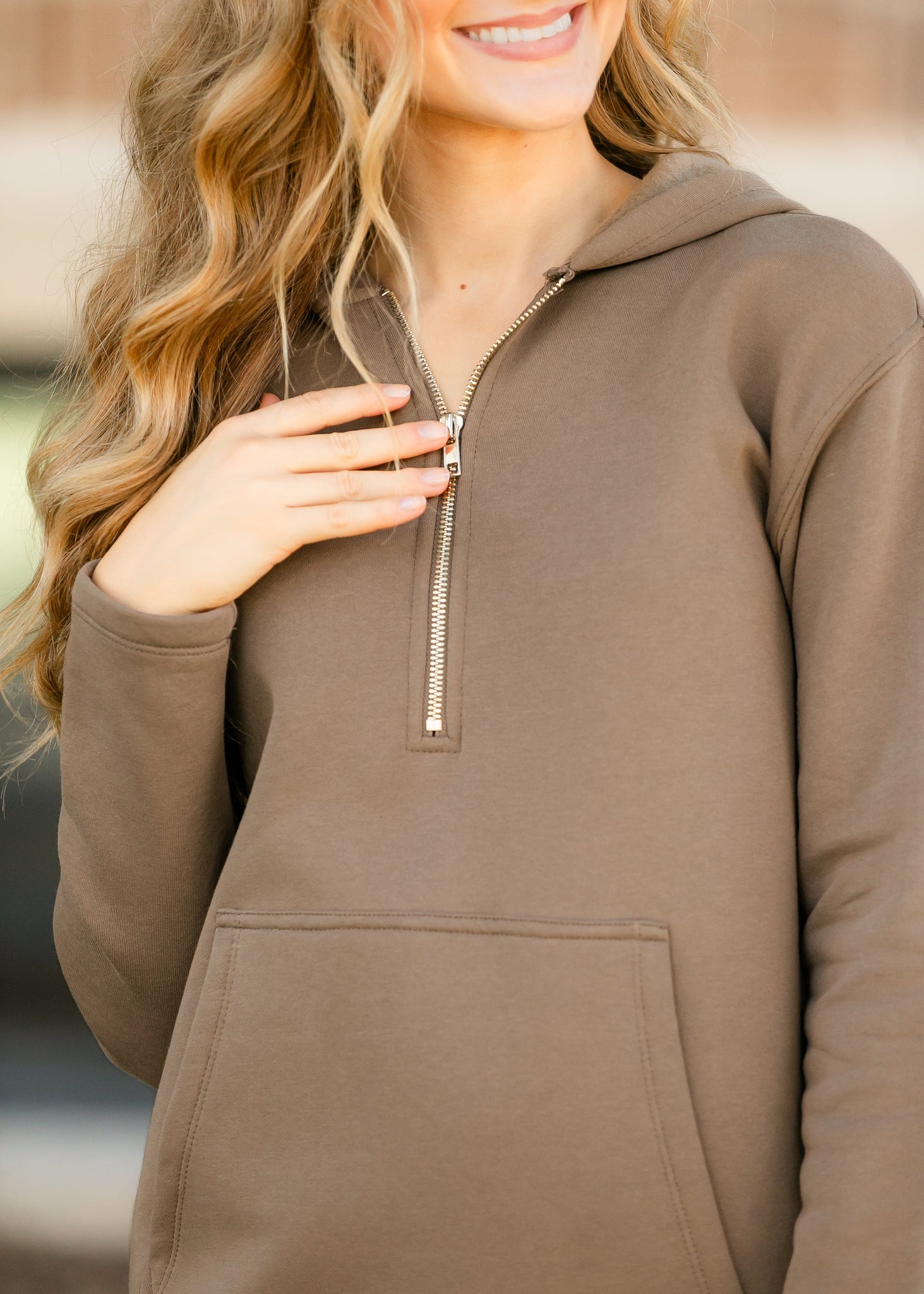 The Olympia Zipper Sweatshirt Dress is where cozy meets effortless style. Crafted from ultra-soft fleece with a modest midi length, this pullover dress features a functional front zipper, kangaroo pocket, and an easy hooded back for laid-back layering. Its relaxed fit and cuffed sleeves make it the ideal throw-on-and-go piece for busy days or casual weekends!