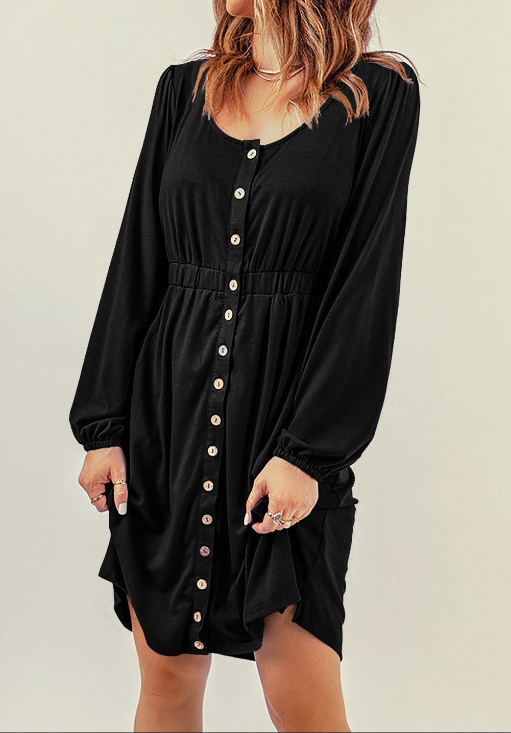This cute button up dress has a scoop neckline, long sleeves, and an elastic waist. It is made with soft, lightweight, and breathable fabric. Pair it with boots, sneakers, sandals, or high heels for a versatile and stylish look year round.