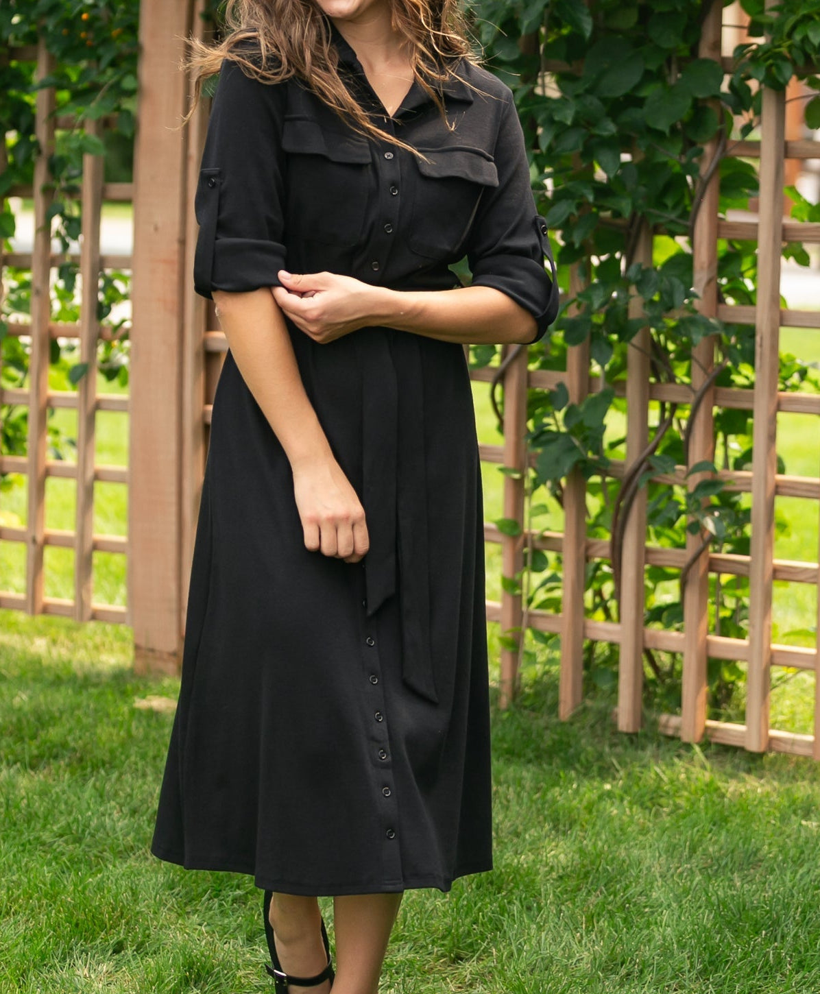 The Lorraine Ribbed Knit Maxi Shirt Dress is a perfect blend of comfort and sophistication, effortlessly merging casual ease with a touch of elevated style. Crafted from a textured ribbed knit fabric, the silhouette of the dress is both relaxed and graceful, featuring a loose fit that skims the body while maintaining a flattering drape. The maxi length adds a sense of drama and sophistication, elongating the silhouette and creating a graceful flow.