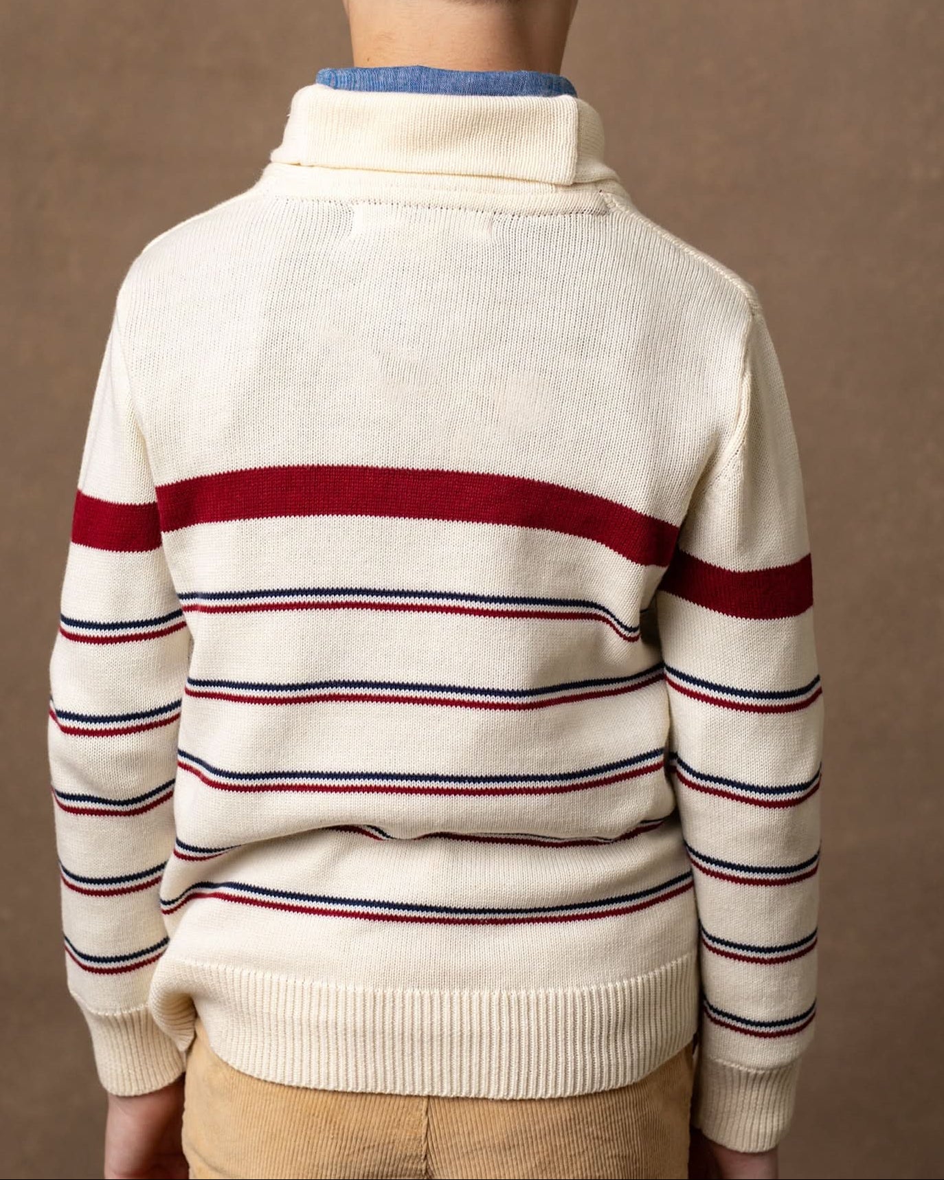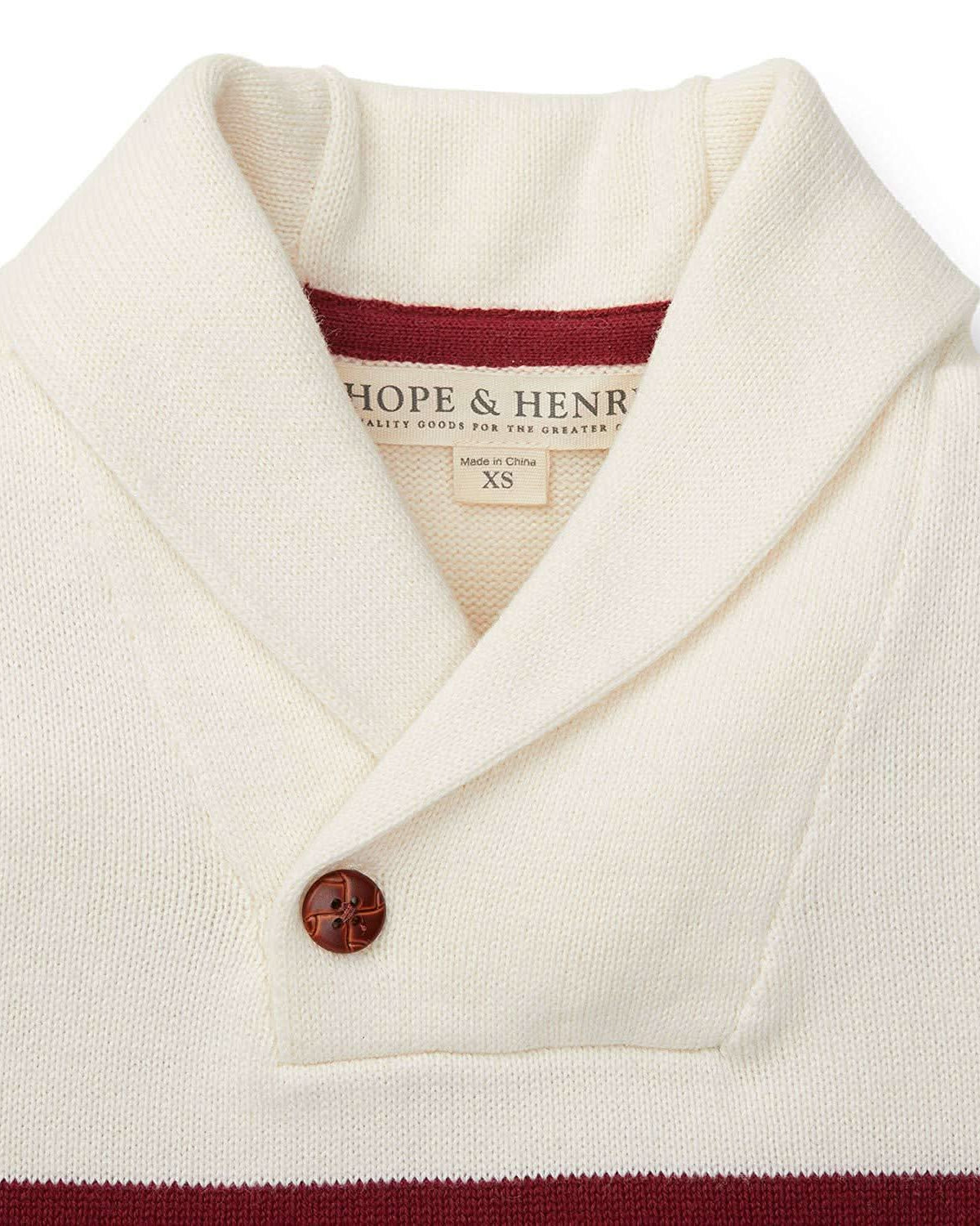 Our shawl collar sweater in soft organic cotton is the ultimate in comfort and style for your guy. Special attention to details such as the shawl collar with button closure and a super cool stripe make this an instant classic that can be worn on repeat and handed down time and again.