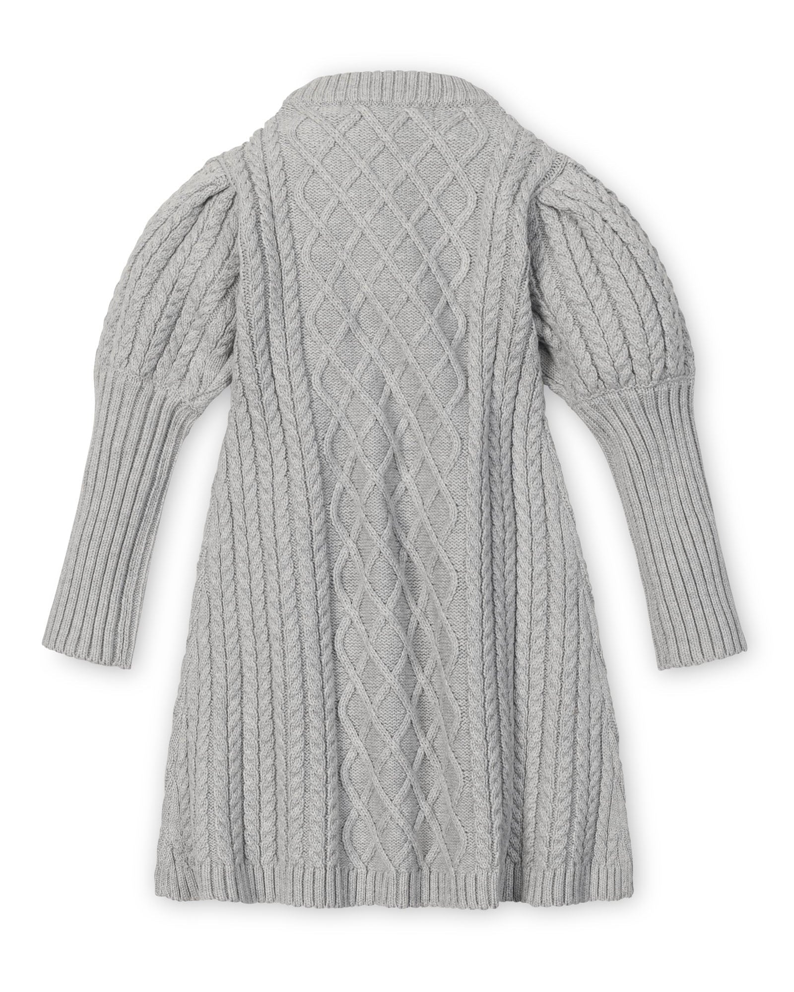 This beautiful piece combines the polish of a dress with the comfort of her favorite sweater (aka the best of both worlds). Features a cozy mock neck with button front placket, dramatic puff sleeves with an elongated cuff, and a chunky allover cable design. Crafted from a substantial, lofty organic cotton.