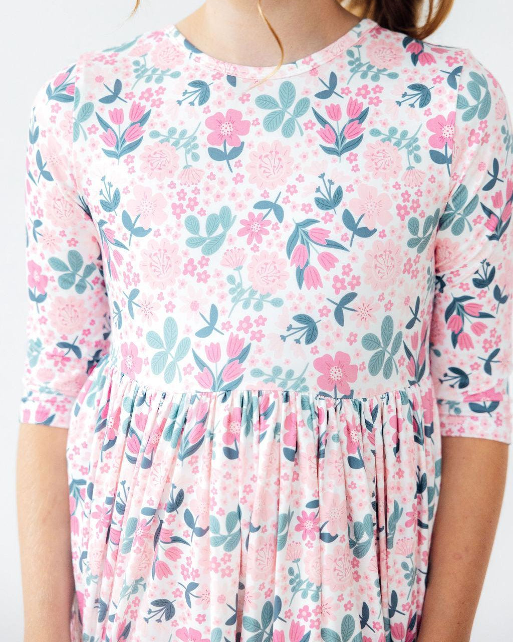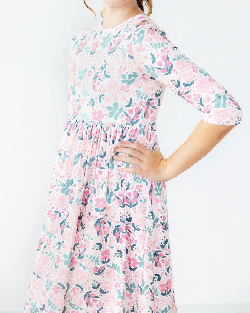 Softly Blooming 3/4 Sleeve Pocket Twirl Dress (3-10)