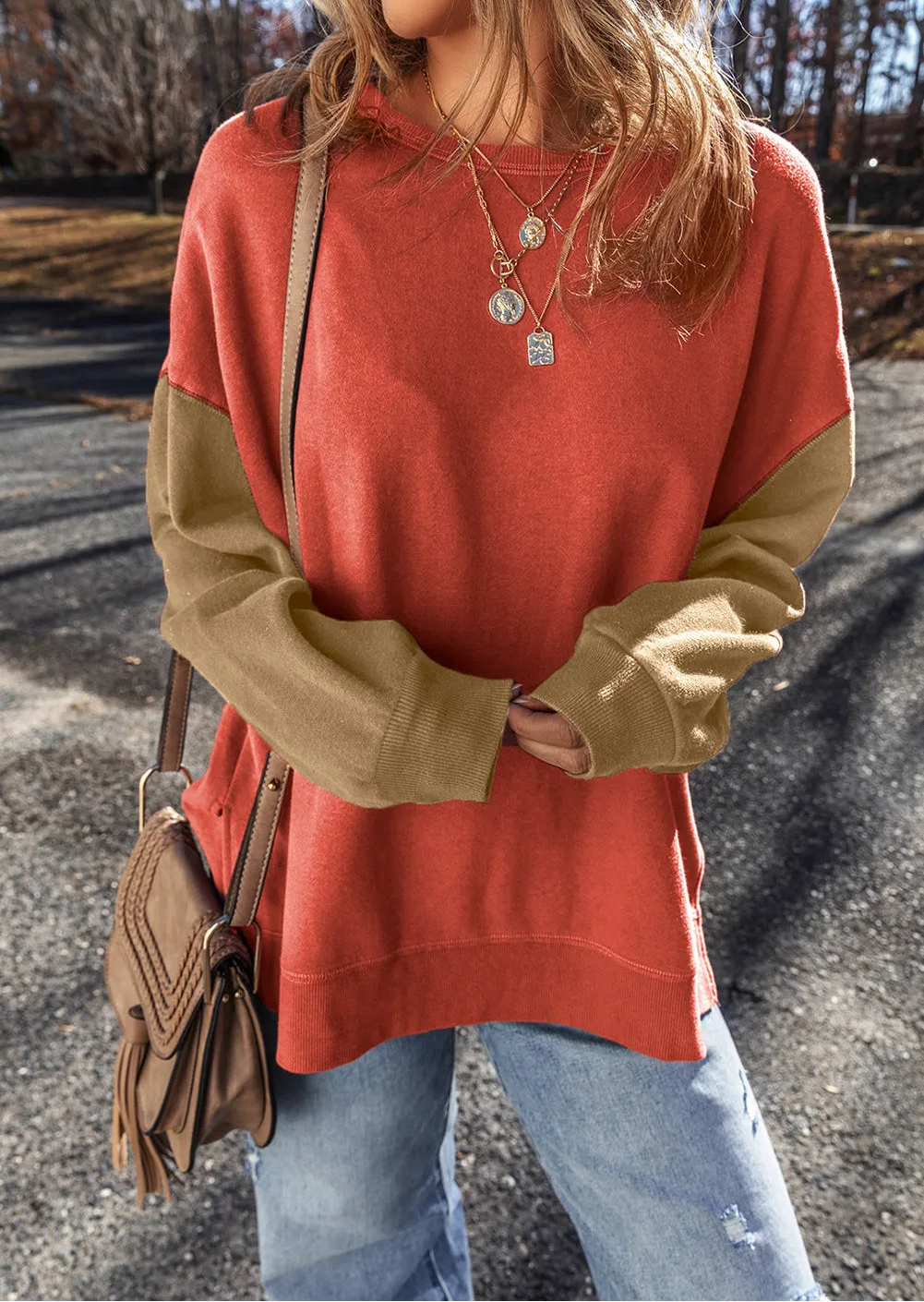 Contrast Round Neck Long Sleeve Sweatshirt (S-2XL) 2 Colors