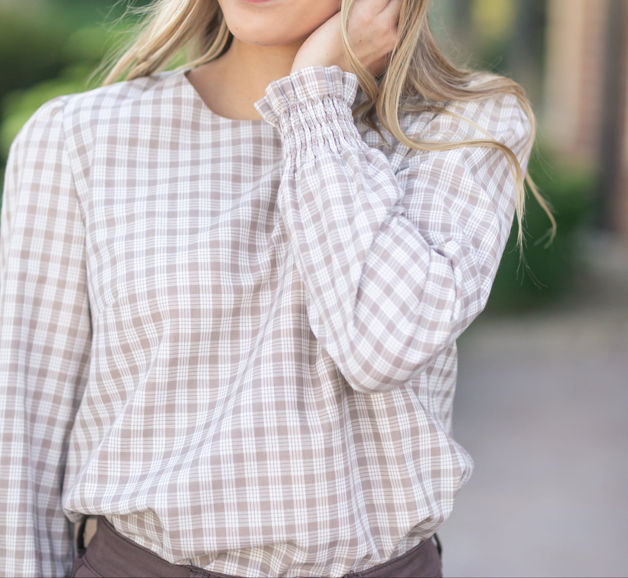 The Blake Cinched Sleeve Blouse is a soft neutral gingham dream with sweet, feminine structure. Its modest neckline and full-length sleeves with subtle shoulder gathers and elasticized wrists create a flattering silhouette that’s easy to dress up or keep casual. Lightweight and polished, this piece adds timeless charm to your everyday wardrobe with just the right detail!