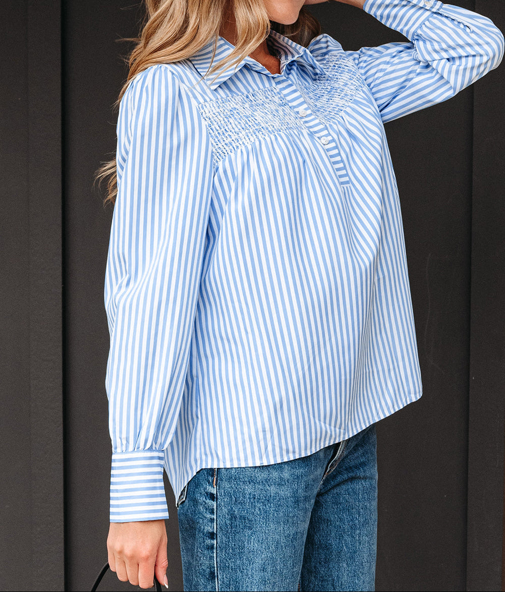 Elevate your outfit with charming shirred accents that bring a chic vibe to your style. The half placket gives a fresh spin on classic shirts, while the timeless collar keeps things neat and polished. With long sleeves that hug you just right, this top is your go-to for cozy, cool fall days.