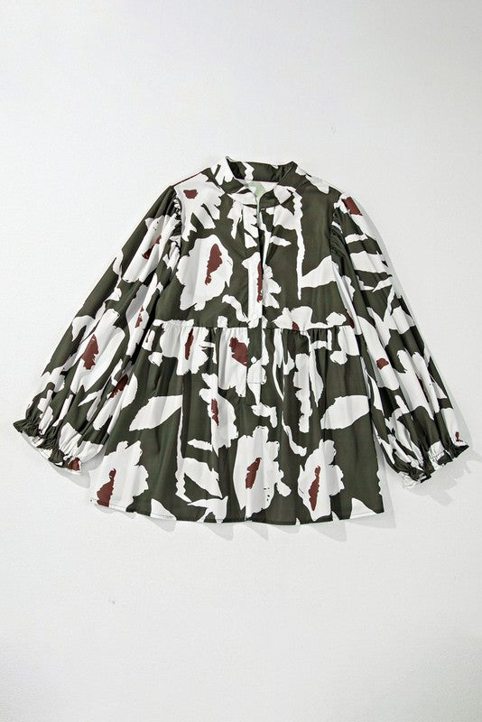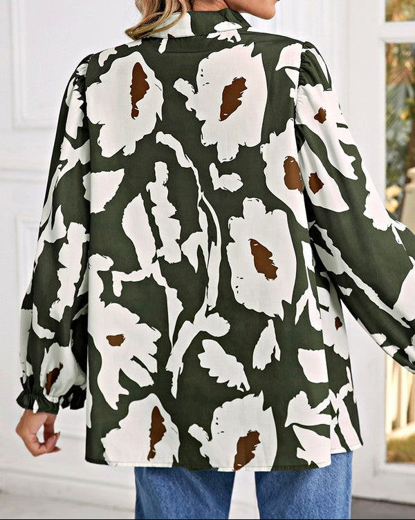 60s Flower Frill Neck Loose Blouse (S-XL)