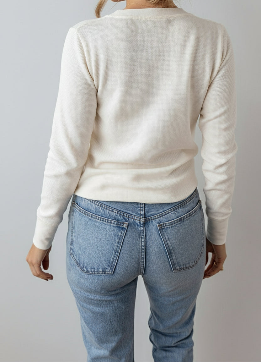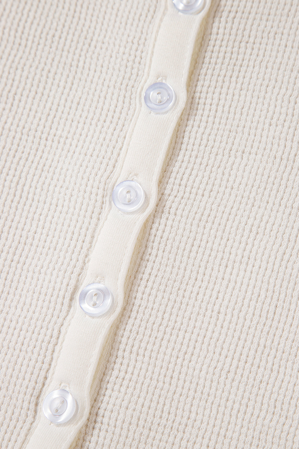 The plain top offers a cozy and stylish option for a classic look. The waffle texture adds depth and a unique feel to this top. The half button front provides a modern twist.